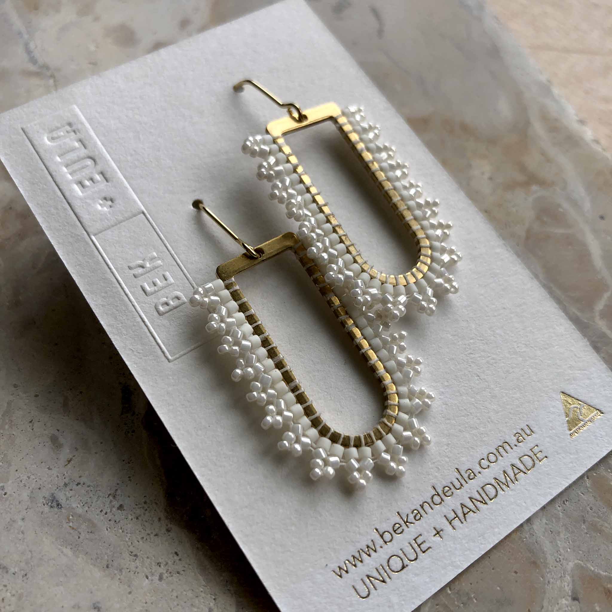 Long Boho Fringe Bead Earrings - Crystal White/Gold/Teal/Terracotta