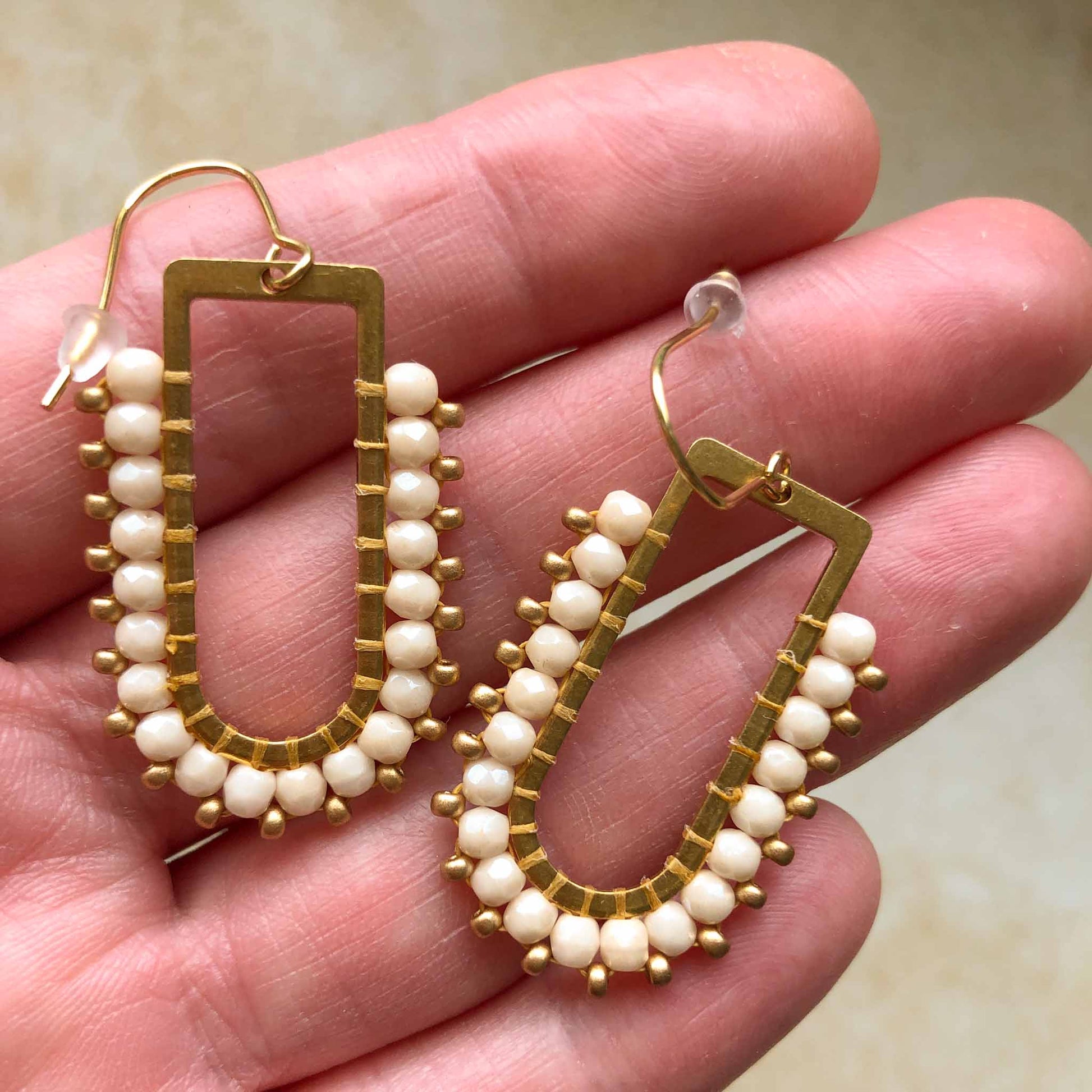 Glamorous and stylish statement woven bead earrings on a d ring brass arch. Handmade in our Melbourne studio these beautiful, lightweight earrings are made using Czech fire polish glass beads with Japanese glass bead detail.
